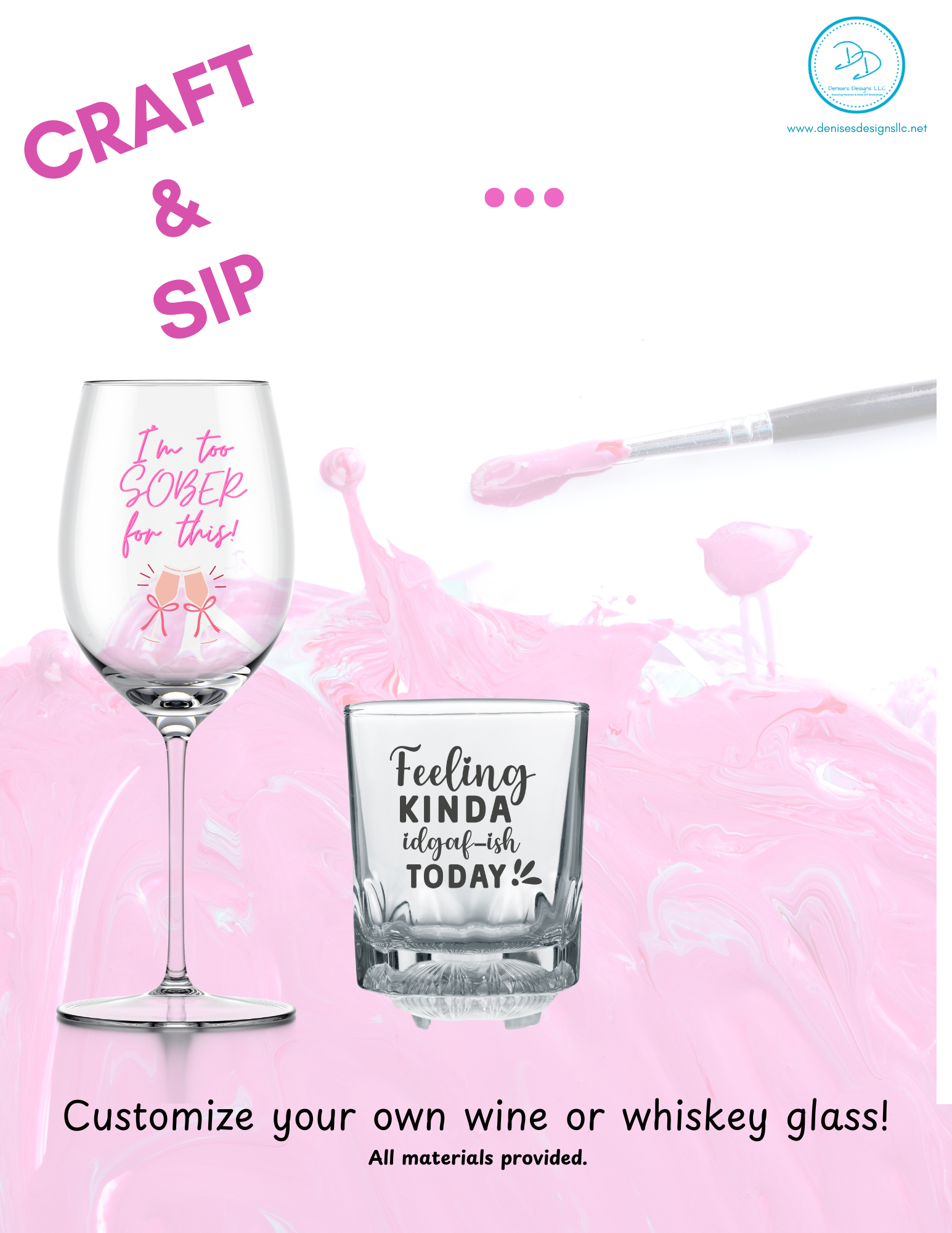 Join us for a fun and memorable evening where you’ll have the chance to create your own custom wine glass or whiskey tumbler.