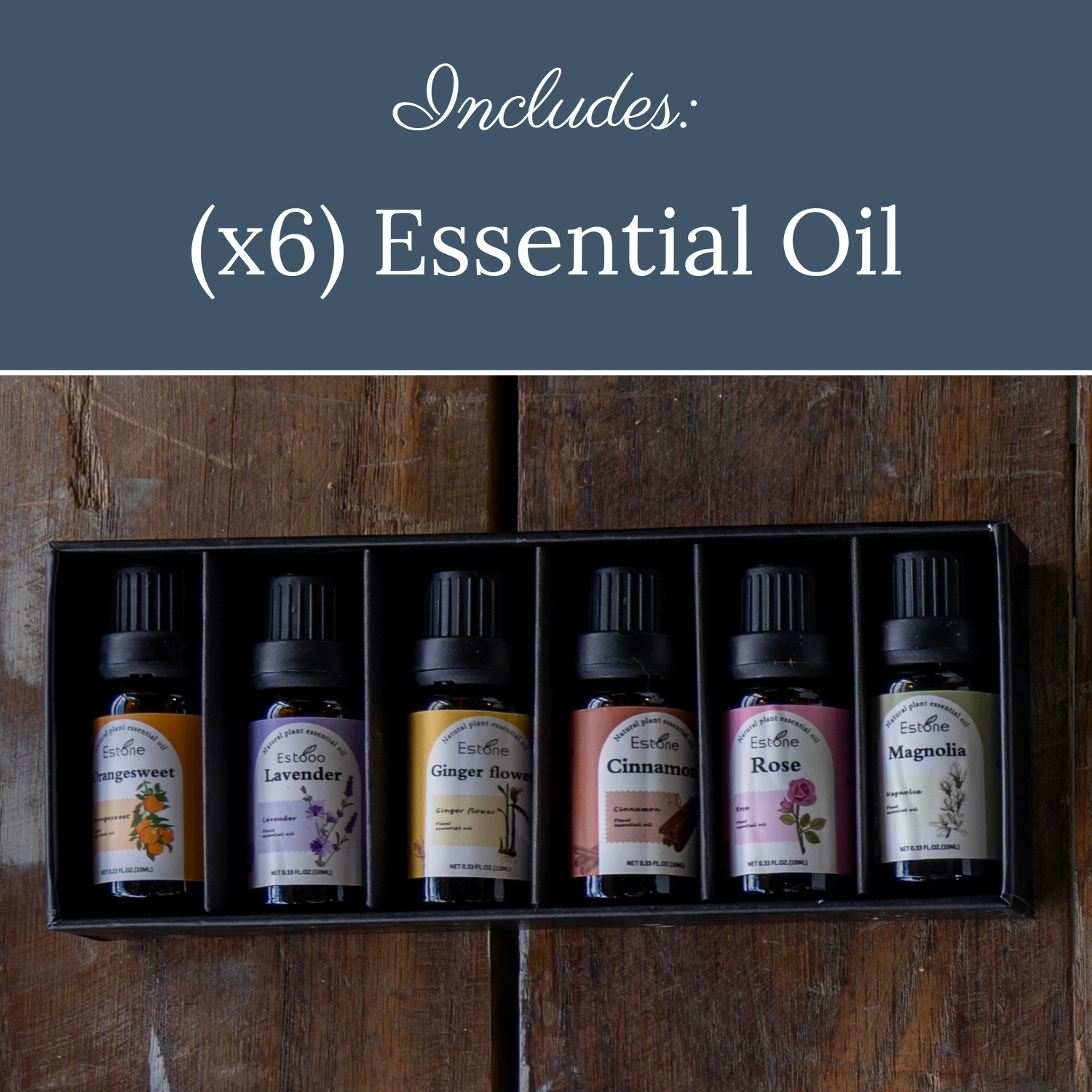 - (x6) Custom Essential Oils: Enhance your stone diffuser with a selection of six pure essential oils, each providing a unique scent and mood-enhancing properties.