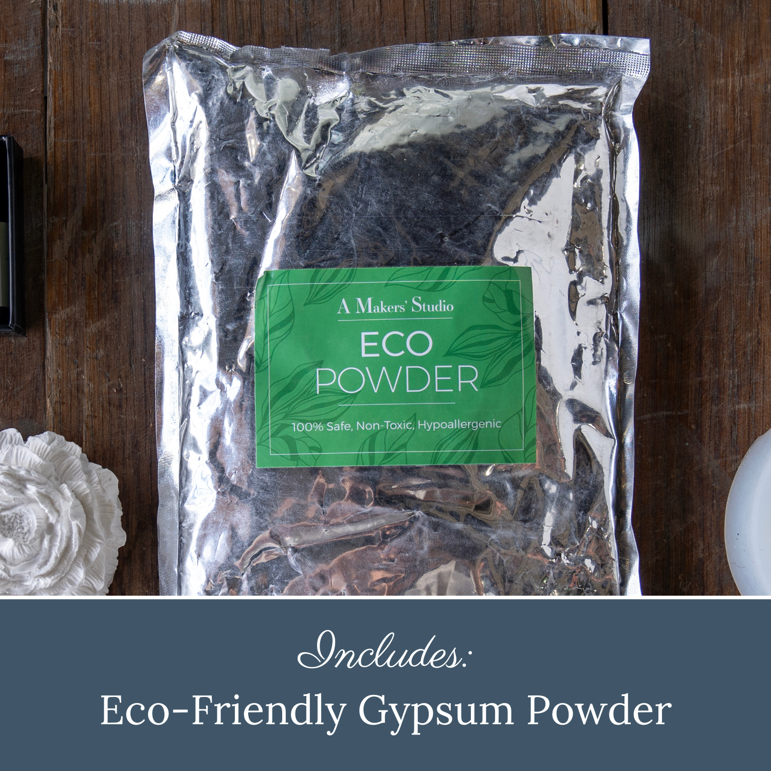 - (2.2lbs) Eco-Friendly Gypsum Powder: Mix and set your creations with our specially formulated gypsum eco resin that ensures a smooth finish and durable hold.