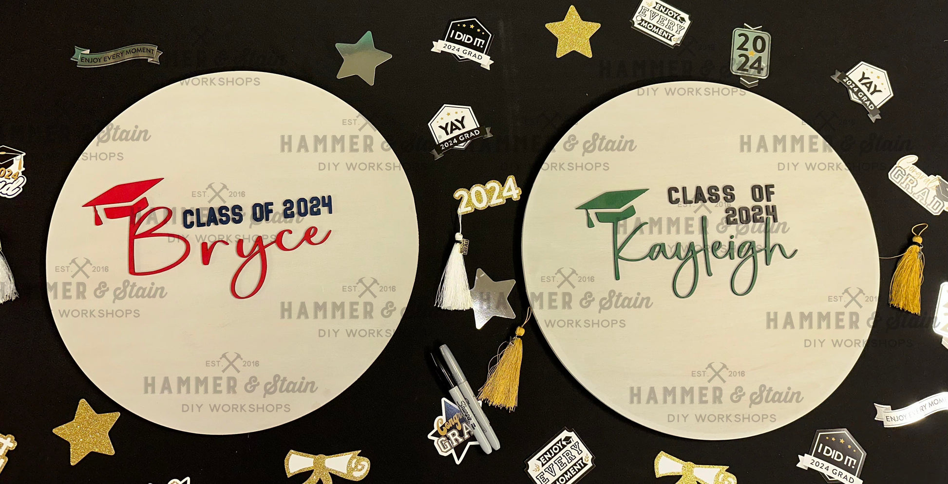 - Select the desired color for the graduate’s name. (The background color is white, the graduation cap and year are black.)