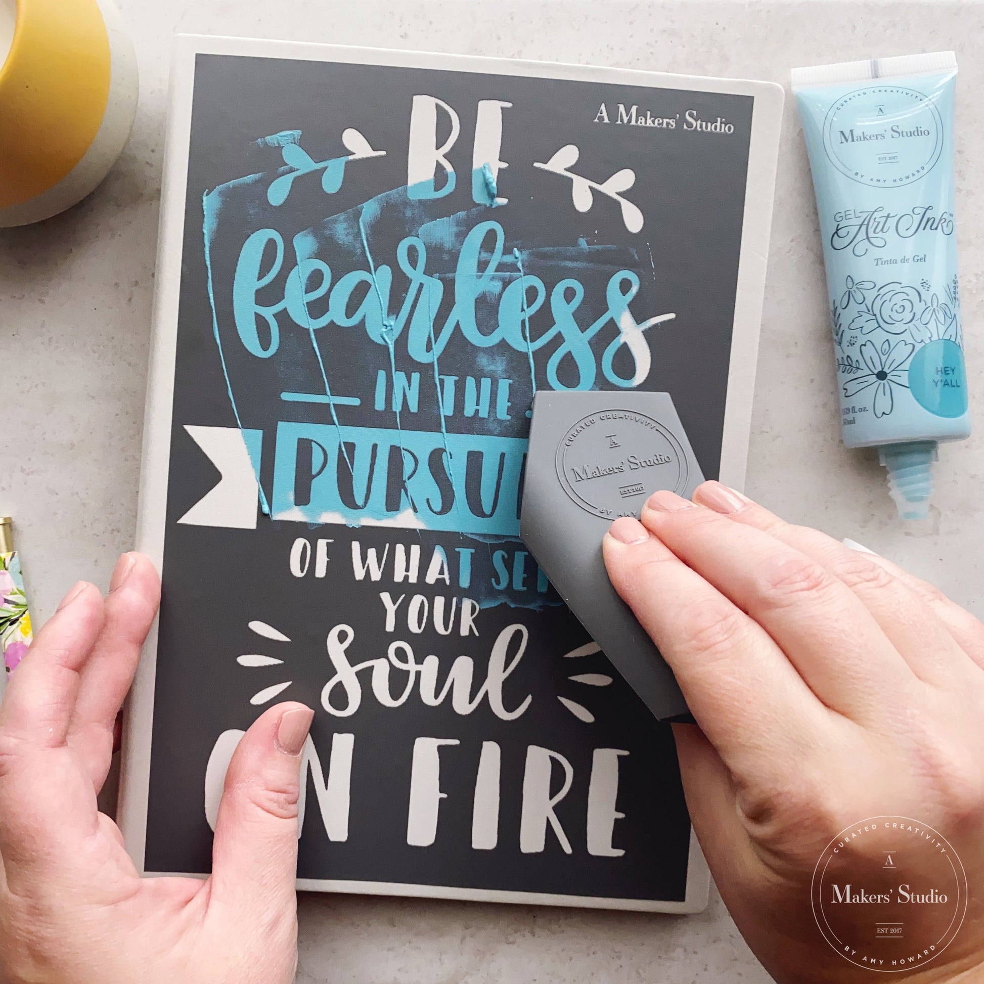 A rubbery flexible tool that allows you to get the best application of ChalkART, Etching Cream, Gel Art Ink or Ceramic Paint onto your project. This type of tool is used in the Silkscreening process.