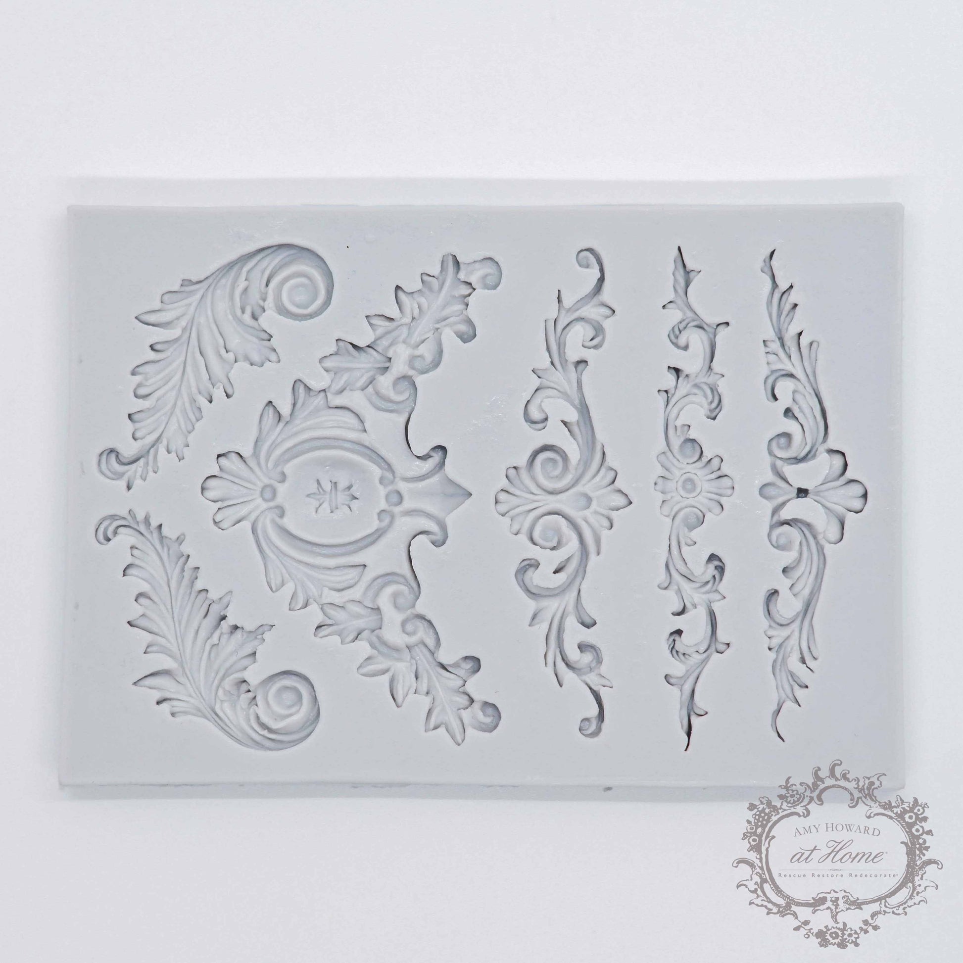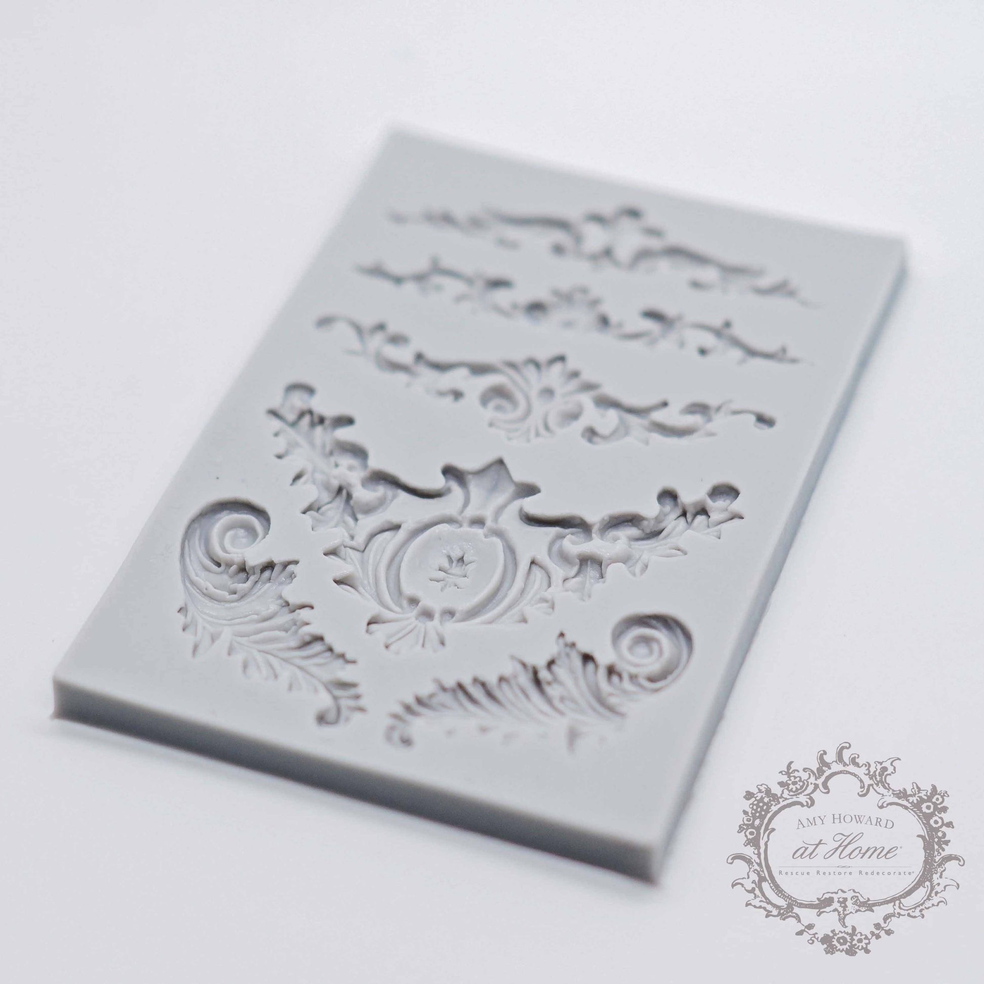 If you have wanted to take your furniture refinishing to a new level… now you can. Amy Howard at Home Decorative Molds are perfect to use with the Acrylic Glacier Resin to create your own custom embellishments and raised decoration on your furniture pieces.