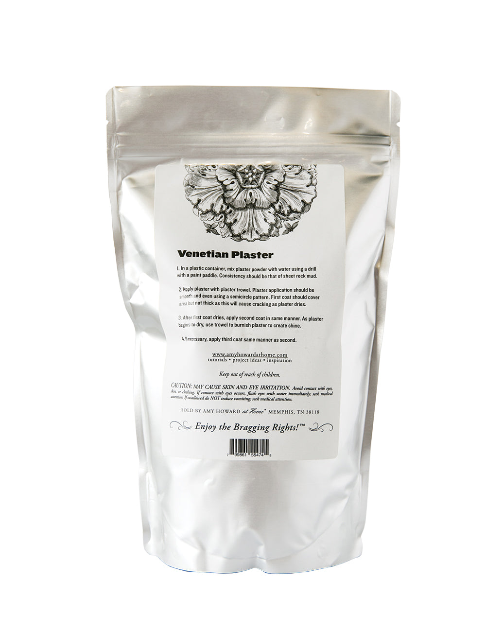 Amy’s Tip: You can use Venetian Plaster on furniture too! First, paint your piece with One Step Paint to help plaster adhere. Thin plaster with water before applying to help keep it from chipping too much after it sets!